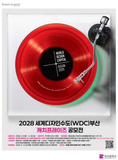[헤럴드경제(부산)=정형기 기자] 부산시는 시민 참여를 통해 공감대를 형성하고 세계디자인수도(WDC) 부산의 브랜드 인지도를 확산하기 위해 ‘2028 세계디자인수도(WDC) 부산 캐치프레이즈 공모전’을 개최한다고 9일 밝혔다. 이번 공모전은 세계디자인수도를 시민과 함께 만들어가는 도시 프로젝트로 확산하기 위해 기획됐다.
