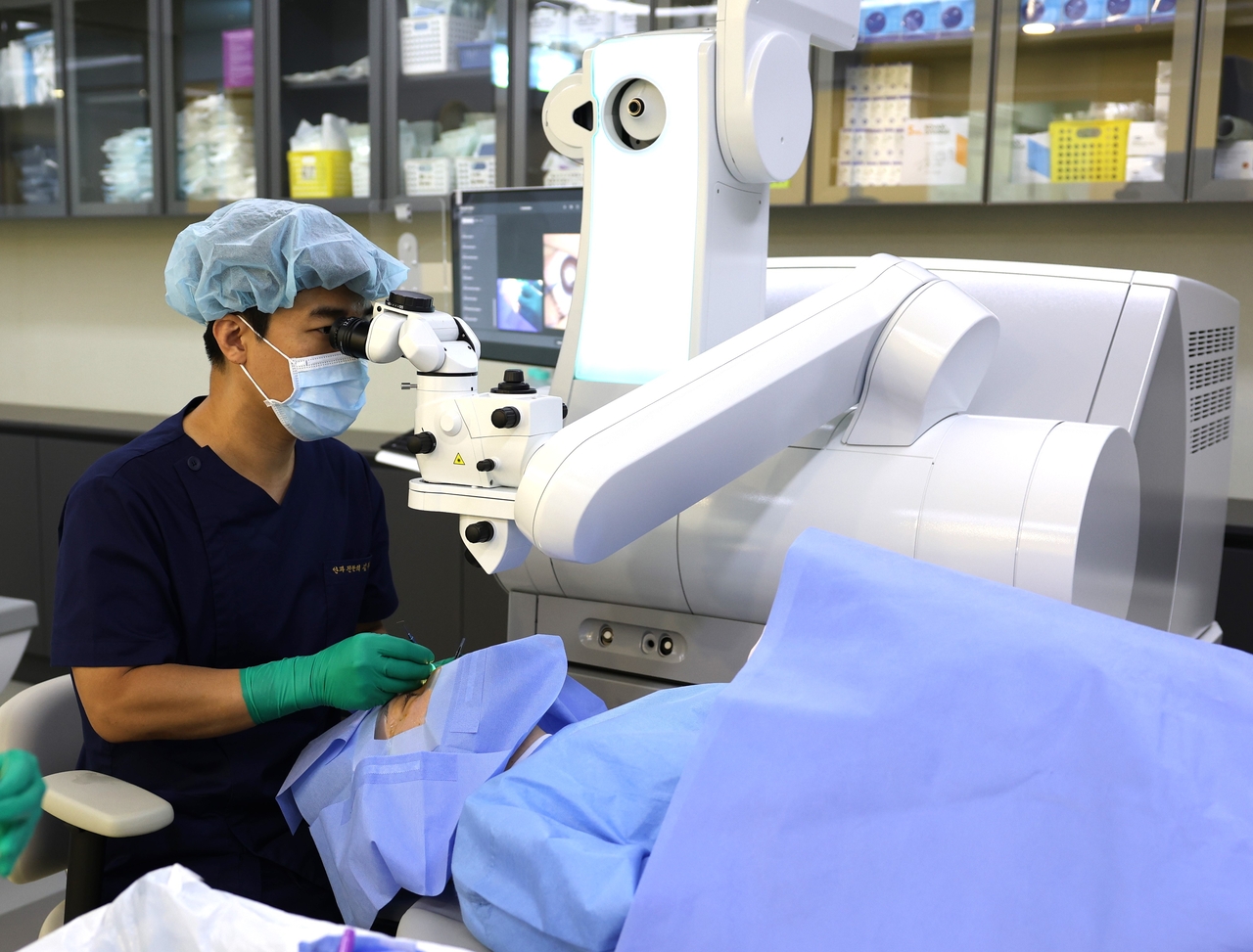 | 스마일프로 시력교정수술을 집도하는 온누리스마일안과 김부기 원장<온누리스마일안과 제공> |