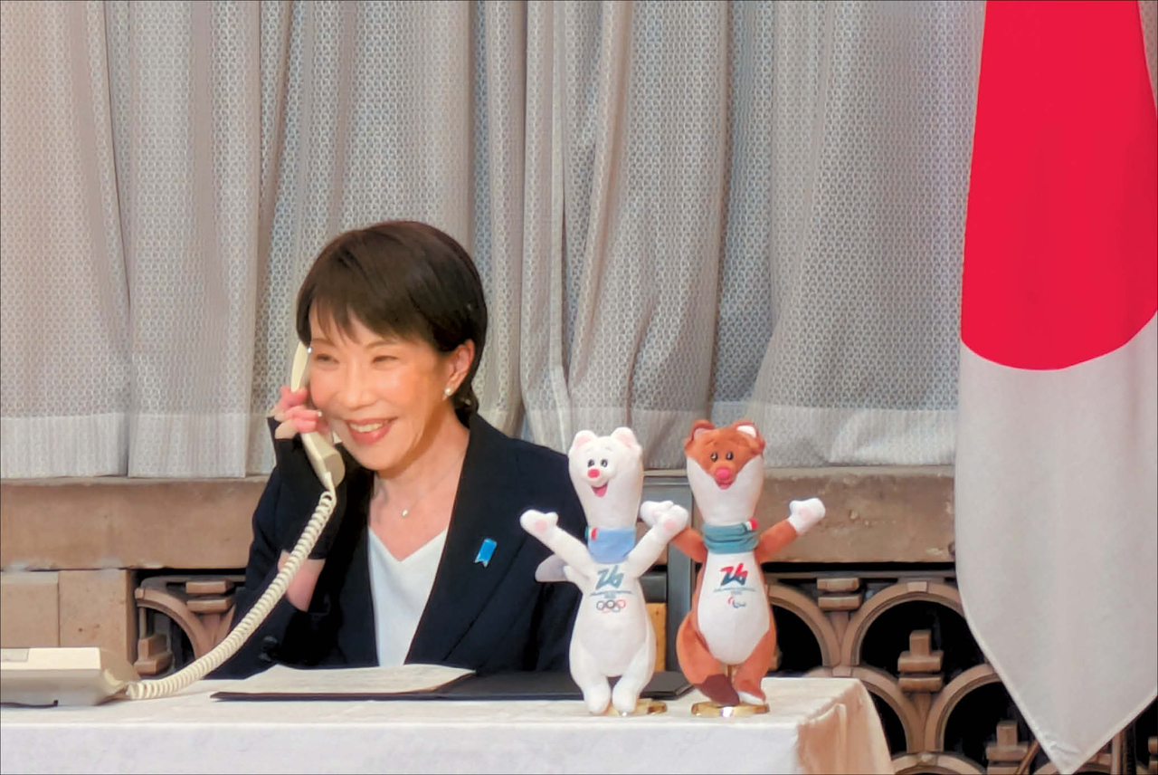 | 일본 집권 자민당이 중의원 선거에서 전체 465석 중 316석의 역대 최다 의석수를 확보하며 역사적 대승을 거뒀다. 자민당 압승을 주도한 다카이치 사나에 총리는 자신의 정치 스승인 아베 신조 전 총리와 같은 강한 권력 기반을 구축하게 됐다. 사진은 다카이치 총리가 9일 밀라노-코르티나 동계올림픽에서 일본 첫 금메달을 획득한 스노보드 기무라 기라 선수에게 축하 전화를 하는 모습. [다카이치 총리 X 캡처] |