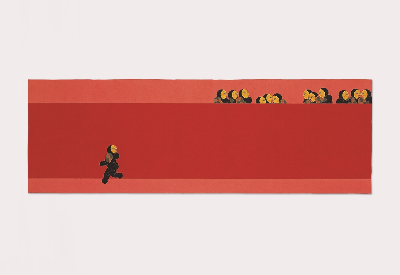 | 양대원, 의심- 붉은벽1, 광목천위에 혼합재료, 63.5×191.5 cm, 2008 |