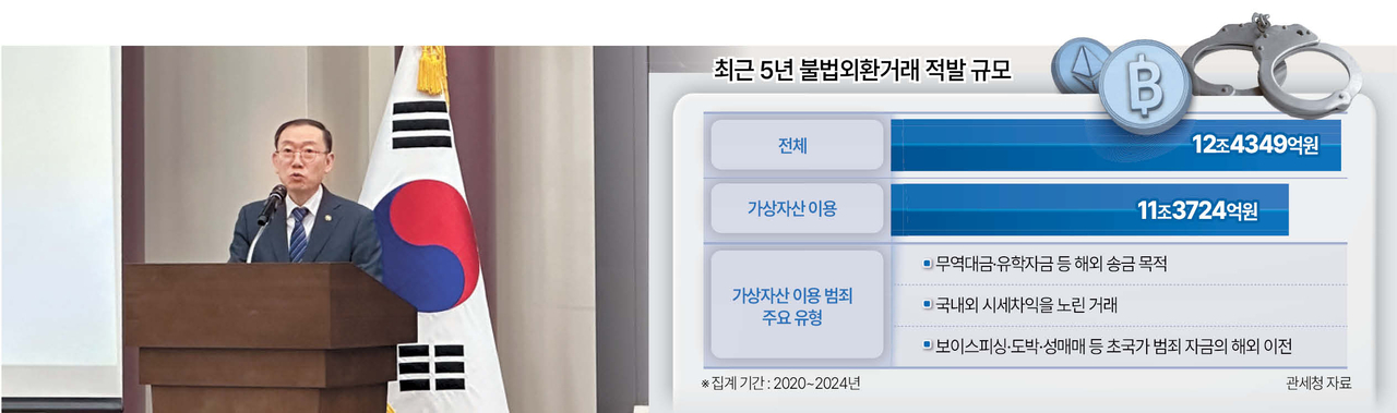 최근 5년간 적발된 불법 외환거래의 90% 이상이 가상자산을 통해 이뤄진 것으로 나타나면서 규제 공백을 메워야 한다는 목소리가 커지고 있다. 관세청은 가상자산사업자 체계를 규모별로 세분화해 제도권으로 편입할 필요가 있다고 강조했다.