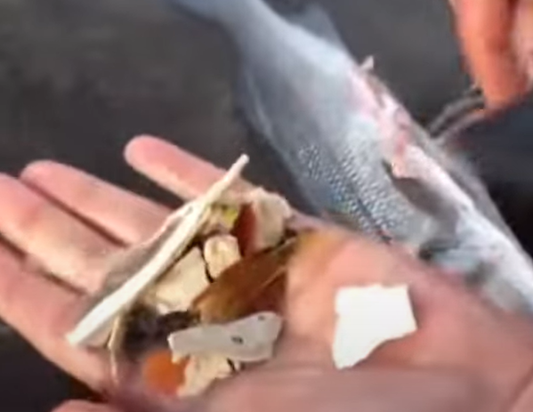 | 생선 속에 들어 있는 각종 쓰레기.[인스타그램 갈무리] |