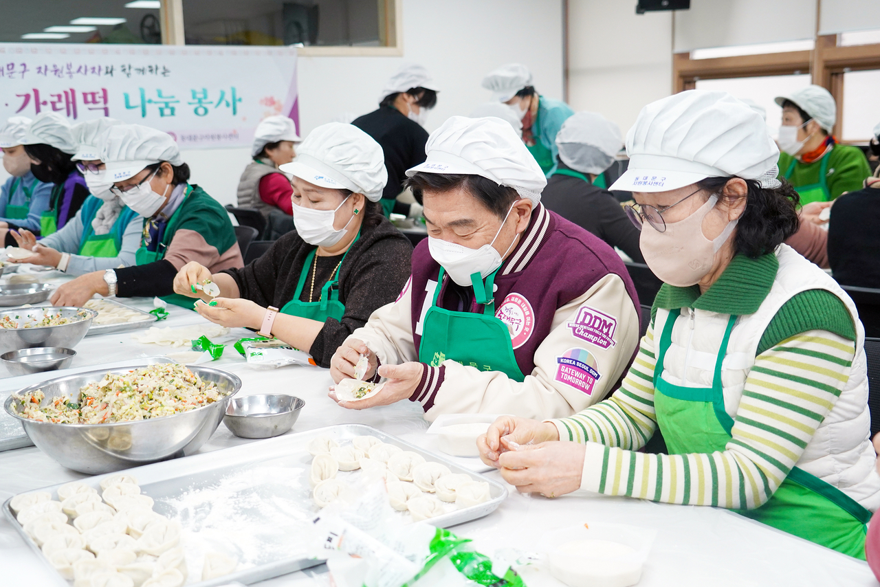 동대문구 자원봉사센터, 12일 봉사자 60여 명과 400여 세대에 만두·가래떡 나눔