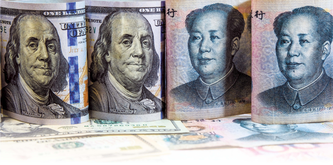 | 100위안 짜리 지폐와 미화 100달러 지폐 모습. [게티이미지] |