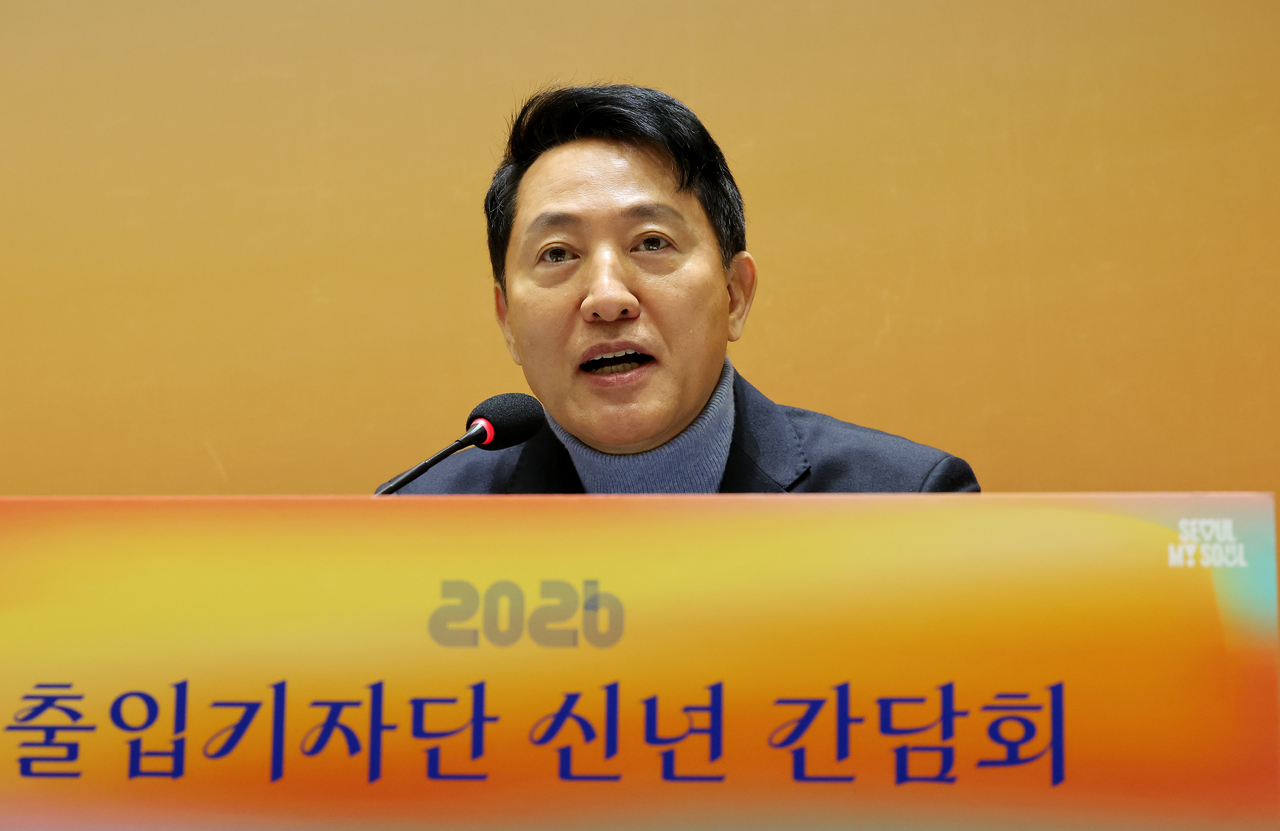 | 오세훈 서울시장이 10일 서울시청에서 열린 출입기자단 신년간담회에서 인사말을 통해 2026년 시정운영 방향 등을 설명하고 있다. [연합] |