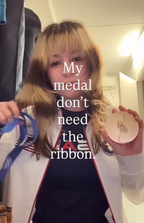 그는 영상에서 메달과 리본이 분리된 모습을 공유하며 “내 메달에는 리본이 필요 없다(My Medal don‘t need the ribbon)”는 글씨를 적어 불만을 드러냈다.