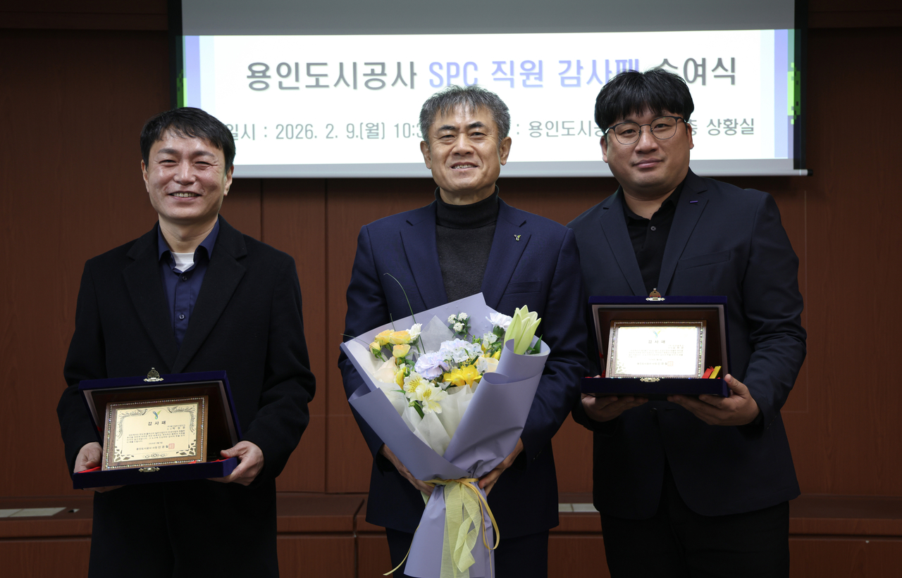 이번 감사패 전달식은 용인시 처인구 원삼면과 이동읍 일대의 사업 현장에서 묵묵히 실무를 수행하며, ‘용인 반도체 클러스터 조성 및 소부장 (소재·부품·장비) 기업 유치’라는 목표 달성에 기여한 SPC 직원들의 노고를 격려하기 위해 마련됐다.