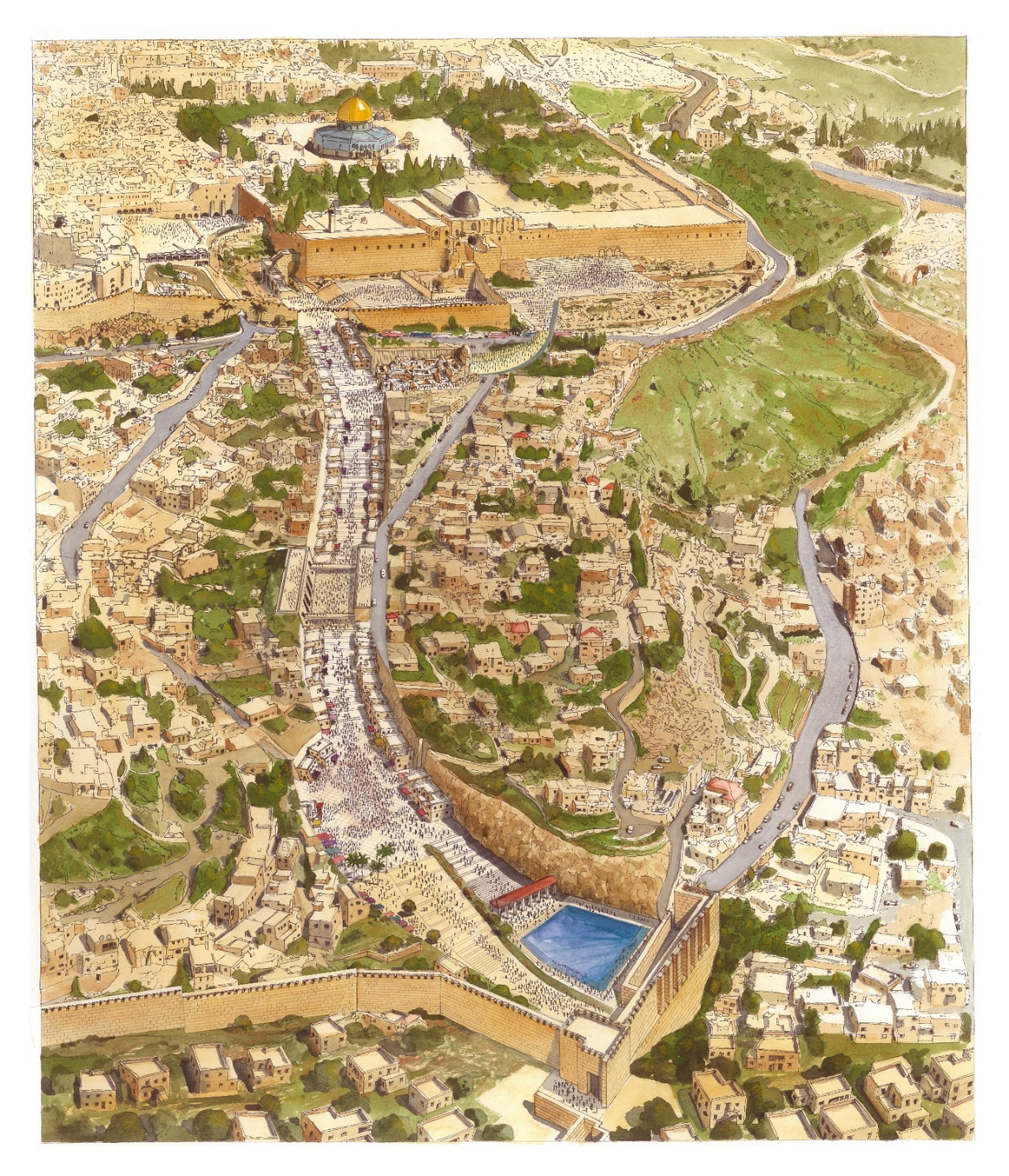 제2 성전시대에 조성된 것으로 여겨지는 이 길은 이스라엘 고대유물 관리국의 약 20년간의 발굴 작업을 의한 산물로, 실로암 연못에서 성전산 정상까지 이어진 예루살렘의 고대 중심거리이다.