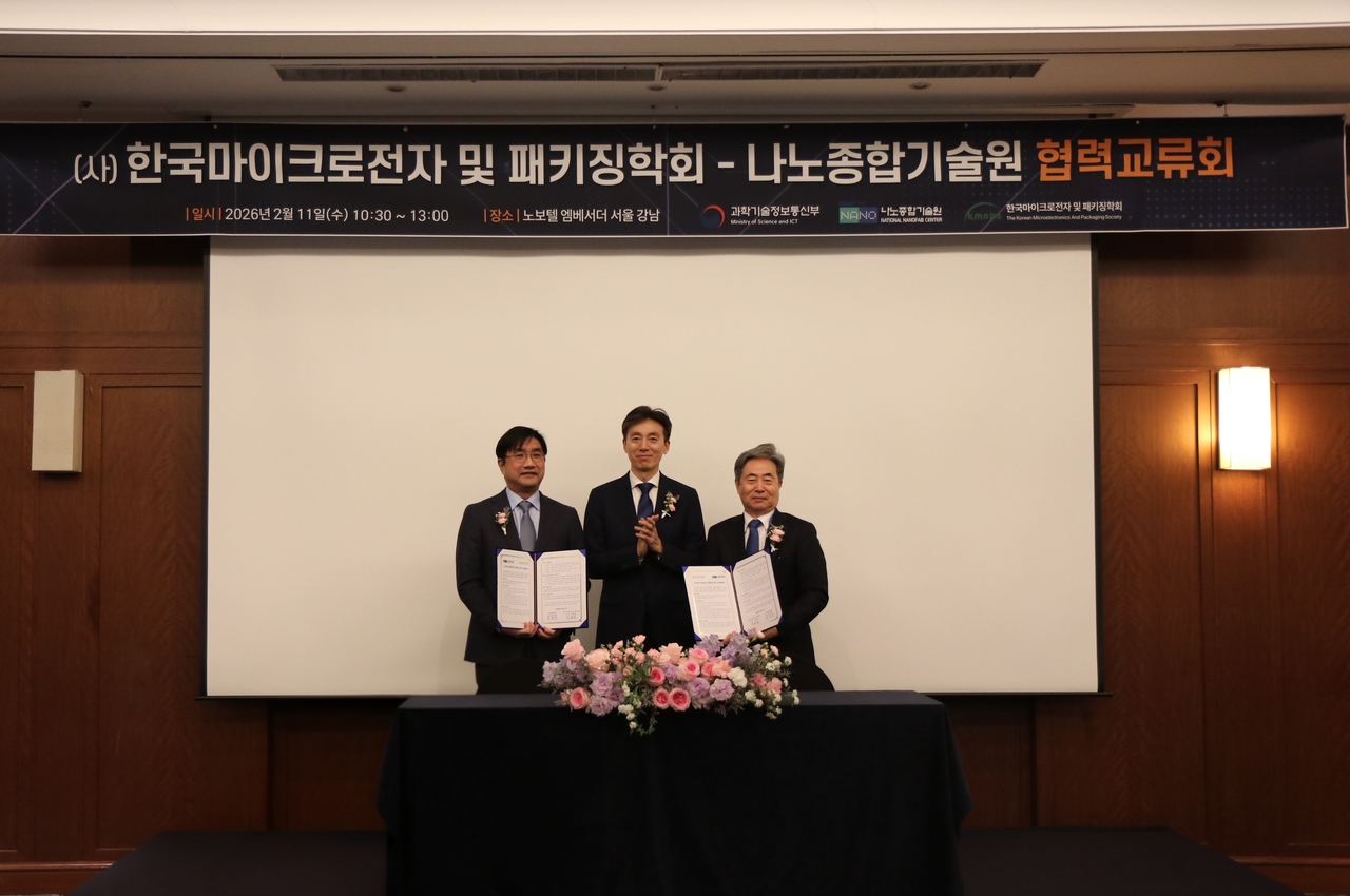 이를 위해 공공 반도체 팹인 나노종합기술원과 한국마이크로전자 및 패키징학회는 11일 노보텔 앰배서더 서울 강남에서 ‘첨단패키징 전문인력양성’을 위한 전략적 업무협약(MOU)을 체결했다.