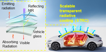 한국연구재단은 서울대학교 고승환 교수, MIT 강 첸 교수, 현대차·기아 기초소재연구센터 및 열에너지통합개발실 연구팀이 공동으로 차량 유리에 적용 가능한 대면적 투명 복사 냉각(STRC, Scalable Transparent Radiative Cooling) 필름을 설계·제작, 실차 평가를 통해 냉방 에너지 절감과 탄소 저감 효과를 입증했다고 밝혔다.