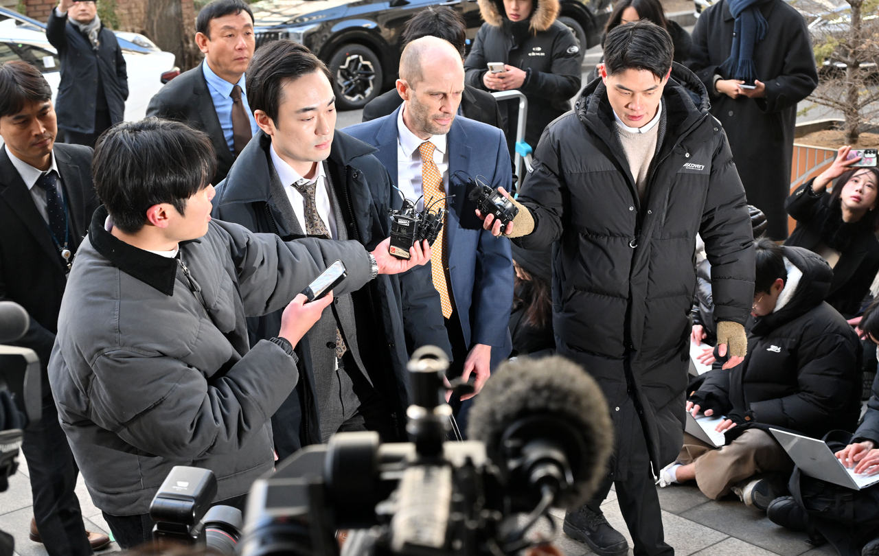 | 해롤드 로저스 쿠팡 대표이사가 지난 6일 오후 서울 마포구 서울경찰청 반부패수사대에 조사를 받기 위해 출석하고 있다. 임세준 기자 |