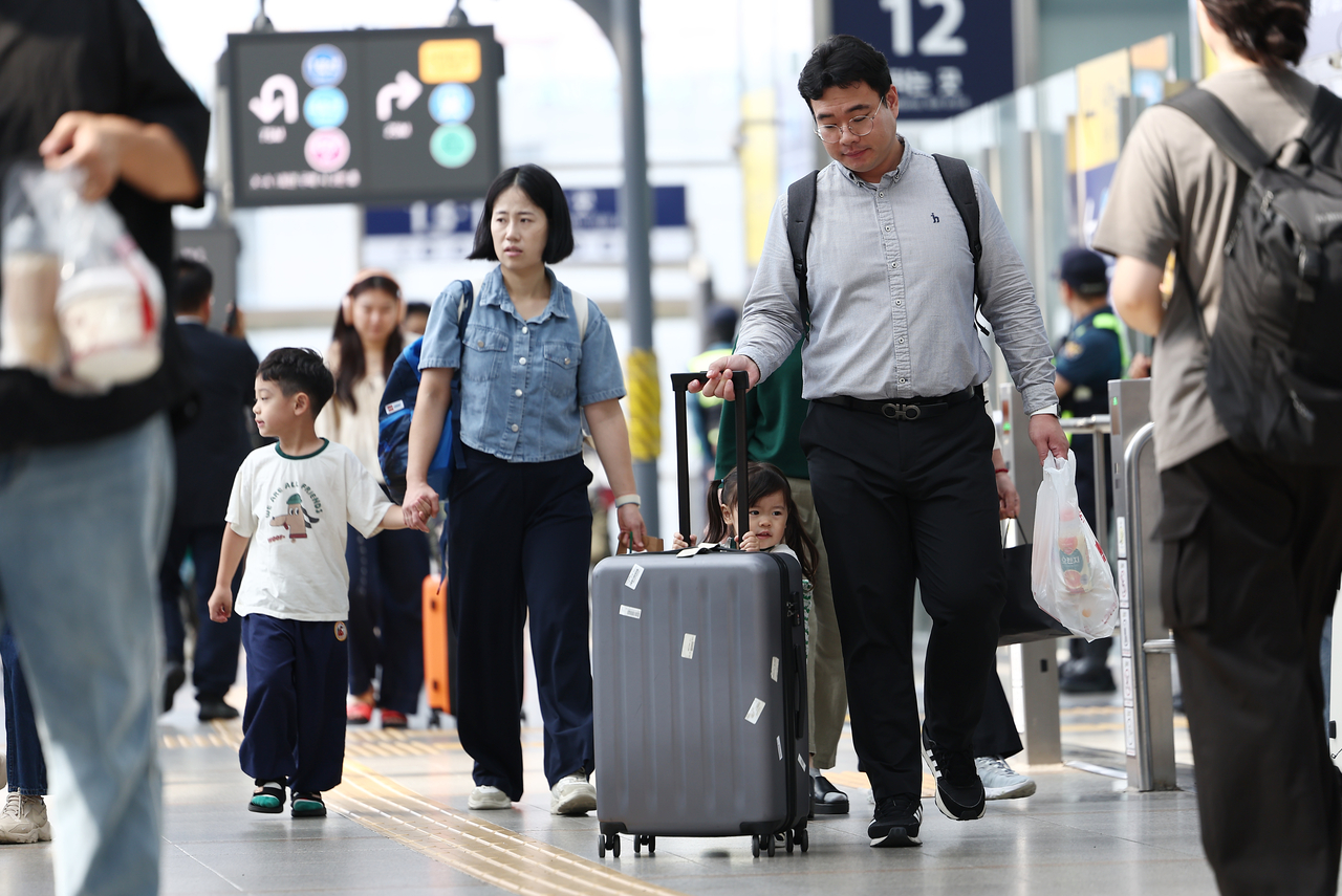 | 서울역에서 귀성길에 오른 한 가족이 이동하고 있다. <연합뉴스> |