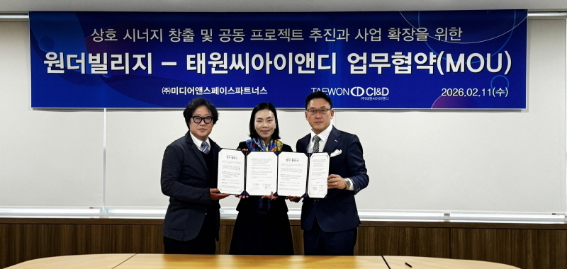 (주)태원씨아이앤디 김준연 부사장은 “신세계그룹 레저 부문의 파트너로서 실행력을 입증한 미디어앤 스페이스 파트너스와의 협업을 통해, 당사 개발 사업에 차별화된 체험형 콘텐츠를 본격 도입하게 됐다”며 “사람을 머무르게 하고 다시 찾게 만드는 앵커 콘텐츠를 통해 공간 경쟁력과 자산가치를 한 단계 끌어올릴 것”이라고 밝혔다. 미디어앤 스페이스 파트너스 정세영·이완섭 공동대표는 “원더파크와 원더빌리지를 통해 축적한 콘텐츠 노하우를 (주)태원씨아이앤디의 공간에 맞춰 고도화해, AI 기반 지능형 콘텐츠 모델로 확장해 나가겠다”고 말했다. 양사는 향후 프로젝트별 협의를 통해 적용 사업지를 선정하고, 단계적인 사업화를 추진할 계획이다.