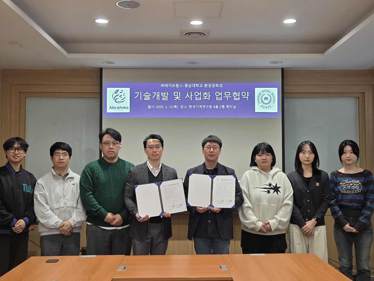 [헤럴드경제=구본혁 기자] 한국기계연구원 연구소기업 ㈜에이브람스는 충남대학교 환경공학과와 인력양성 및 기술개발을 위한 업무협약(MOU)을 체결했다고 12일 밝혔다.