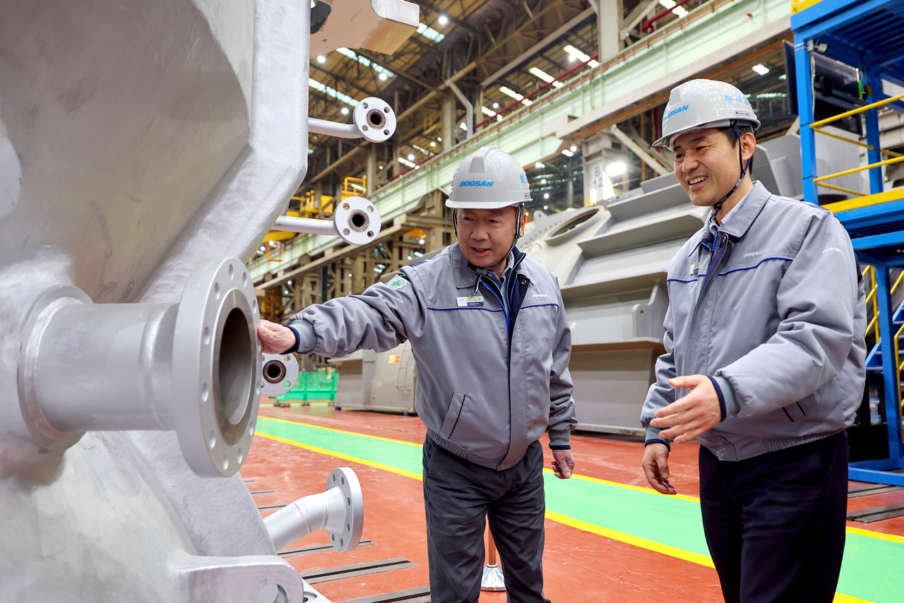 ▶가스터빈·SMR 집중 점검=12일 두산에 따르면 박 회장은 11일 경남 창원 두산에너빌리티 사업장을 방문해 에너지 사업 현황을 점검했다. 발전용 가스터빈 공장과 SMR 주기기 제작라인을 집중적으로 둘러보면서 현장 상황을 세밀하게 살폈다.