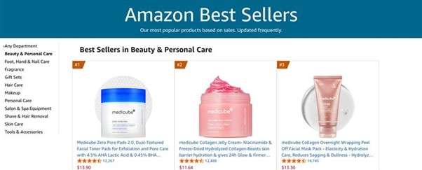 아마존 내 뷰티 카테고리에서 지난해 메디큐브 매출은 전년 대비 432% 성장했다. ‘제로모공패드’, ‘콜라겐 랩핑 마스크’, ‘PDRN 겔 마스크’ 등이 인기를 끌었다.