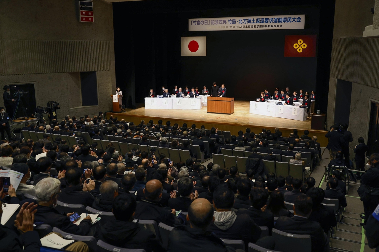 | 일본 시마네현 마쓰에시에서 지난해 2월 22일 ‘다케시마(竹島·일본이 주장하는 독도의 명칭)의 날’ 기념식이 열리고 있다. [헤럴드DB] |