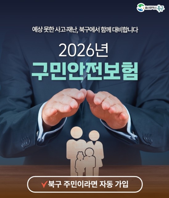 | 울산 북구청이 주민 누구나 ‘구민안전보험’ 자동 가입으로 예상 못한 사고·재난에 대비할 수 있다고 안내하고 있다. [울산 북구청 공식 블로그 캡처] |