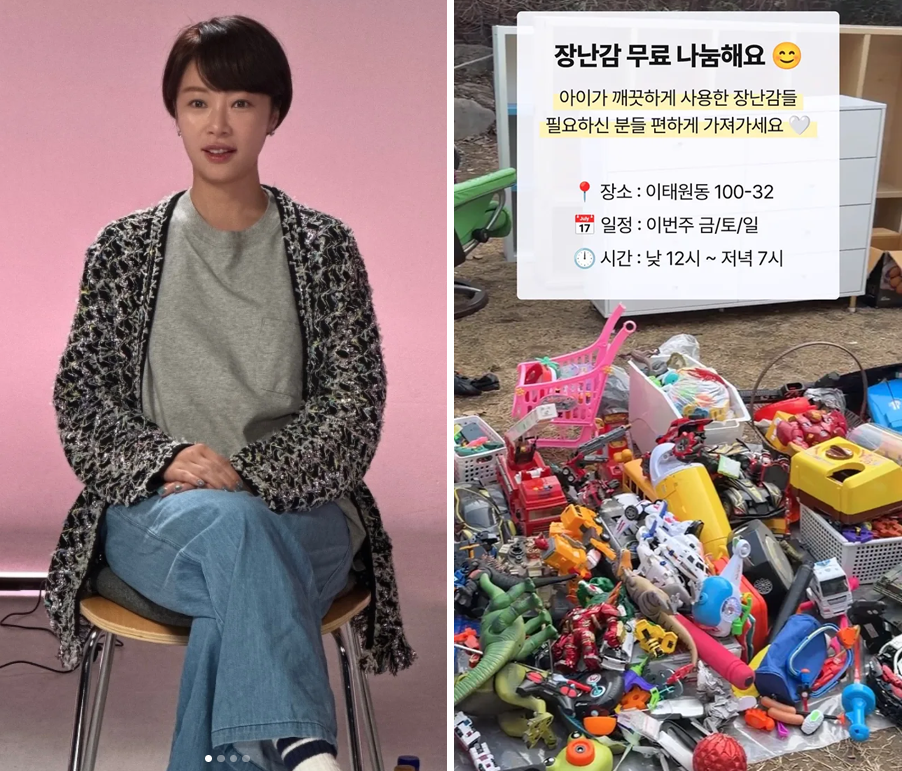 황정음은 12일 자신의 인스타그램에 “장난감 무료 나눔해요. 아이가 깨끗하게 사용한 장난감들, 필요하신 분들 편하게 가져가세요♥”라는 글과 함께 사진을 게재했다.