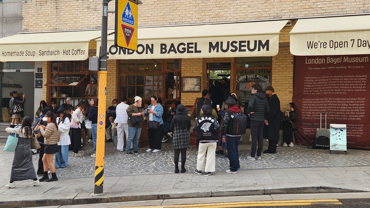 | 런던베이글뮤지엄(런베뮤) 인천점에서 일하던 20대 노동자 정모 씨가 주 80시간에 가까운 노동에 시달리다 지난 7월 숨졌다는 과로사 의혹이 제기됐다. 사진은 런베뮤 안국점 매장 밖에서 손님들이 대기하는 모습. [안효정 기자] |
