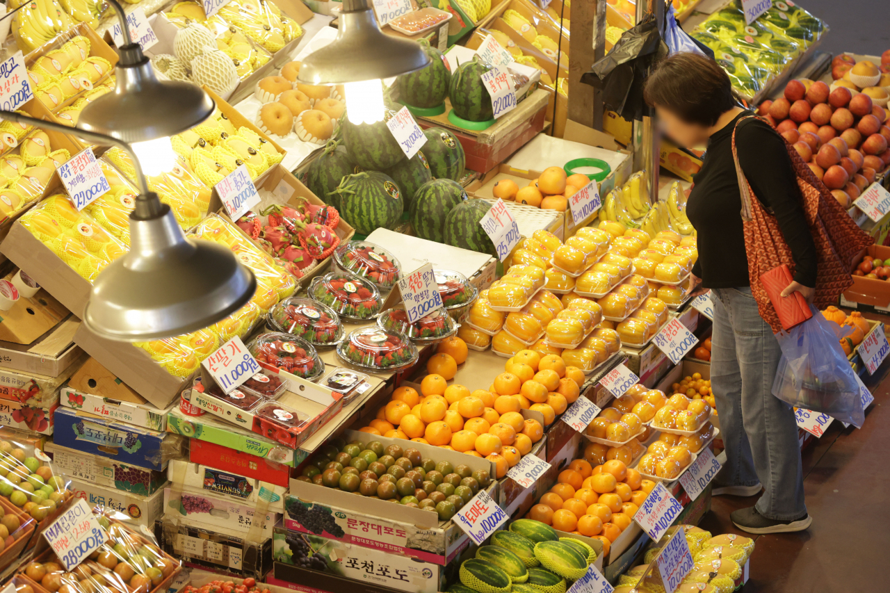| 서울의 한 전통시장에서 장을 보고 있는 시민. [연합] |