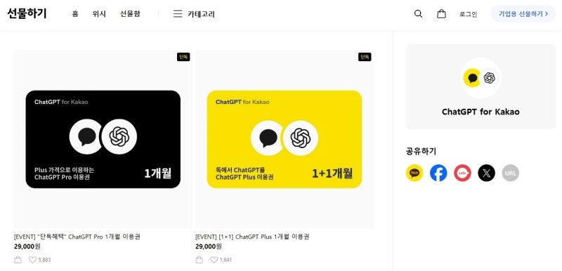 15일 관련업계에 따르면 지난 12일부터 카카오톡 선물하기에서 판매 중이던 ‘챗GPT Pro 1개월 이용권’(2만9000원)은 전날 오후 준비 수량이 모두 소진됐다.