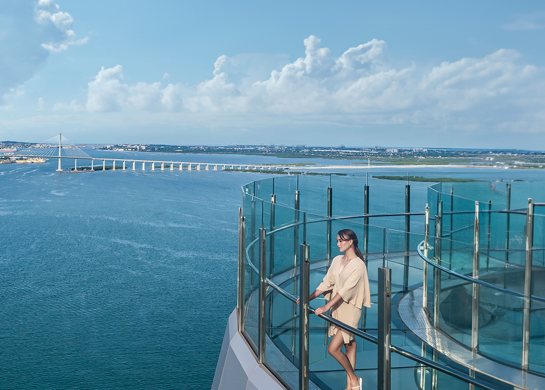 누스타 스카이데크는 반원형 유리로 설계되어, 하늘 위에서 세부 시내와 해안선, 끝없이 펼쳐지는 바다를 한눈에 담을 수 있다.