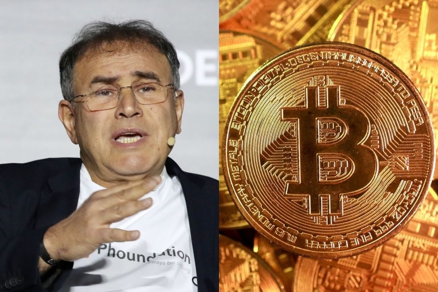 | 누리엘 루비니 뉴욕대 교수와 비트코인 이미지. [뉴시스·로이터 연합뉴스] |