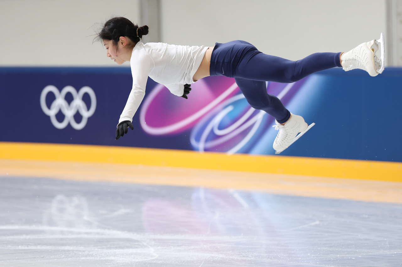| 5일 이탈리아 밀라노 아이스스케이팅 아레나에서 피겨 여자 싱글 이해인이 훈련하고 있다. [연합] |