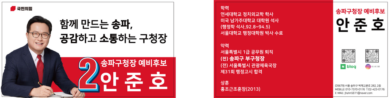 존경하고 사랑하는 66만 송파구민 여러분, 안녕하십니까? 준비된 행정 전문가, 여러분의 든든한 이웃 안준호입니다.