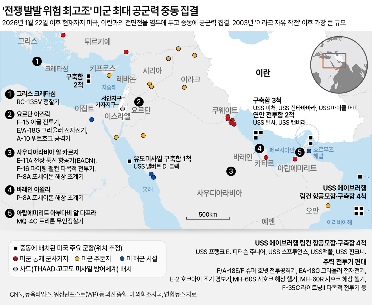 | ‘전쟁발발 위험 최고조’ 미군 최대 공군력 중동 집결 |