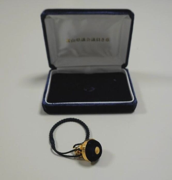 | 기존 도야마현의원 배지. [아사히신문] |