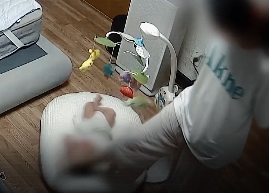 | A 씨가 아기의 발목을 잡아 침대에 내동댕이친 모습[SBS ‘그것이 알고 싶다’] |