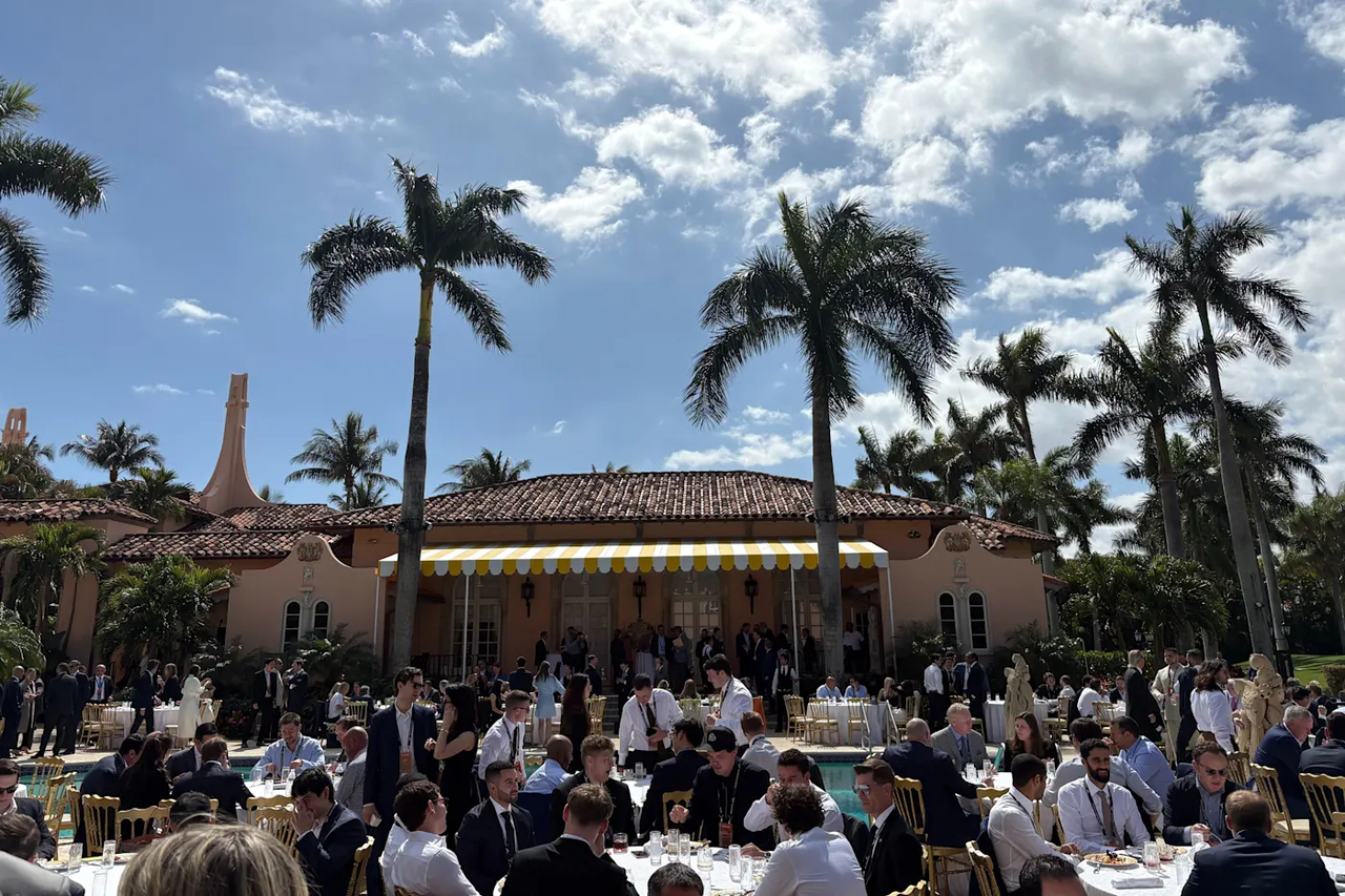 20일(현지시간) 파이낸셜타임스(FT)에 따르면 지난주 마러라고에는 니키 미나지, 잔니 인판티노 국제축구연맹(FIFA) 회장, 데이비드 솔로몬 골드만삭스 최고경영자(CEO)를 비롯해 미국 상원의원, 글로벌 자산운용사 수장, 디지털 자산 거물 등 400여 명이 집결했다. 행사는 월드 리버티 파이낸셜이 주최했고, 무대의 중심에는 도널드 트럼프 주니어와 에릭 트럼프가 섰다.