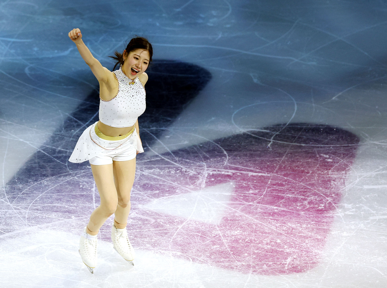 | 22일 이탈리아 밀라노 아이스스케이팅 아레나에서 열린 2026 밀라노-코르티나 동계올림픽 피겨스케이팅 갈라쇼에서 이해인이 ‘케이팝 데몬 헌터스’에 맞춰 연기를 펼치고 있다. [연합] |