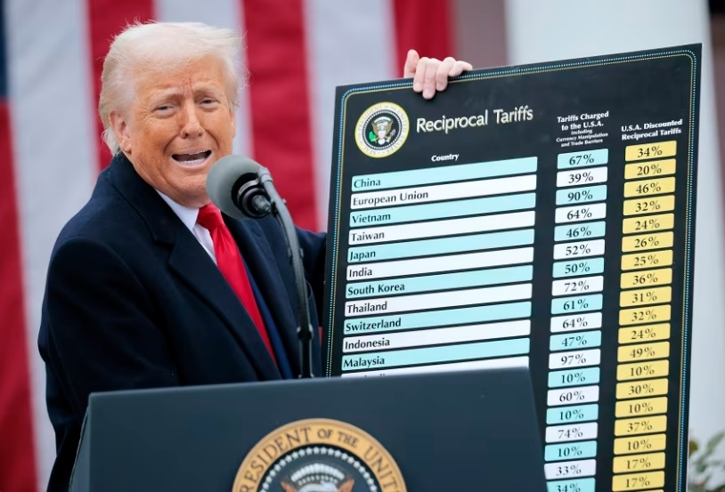 | 2025년 4월 국가별 상호관세율을 발표하는 도널드 트럼프 미국 대통령 [로이터] |