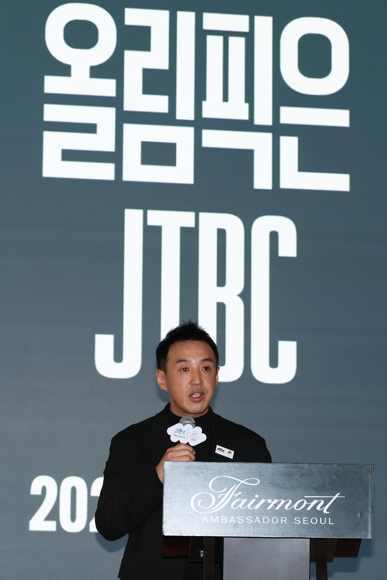 | 곽준석 JTBC 편성전략실장이 2026 밀라노 코르티나 동계 올림픽 JTBC 단독중계 관련 기자간담회에서 발언하는 모습. [연합] |