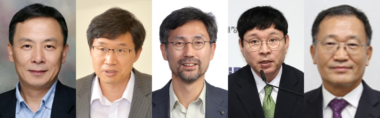| 신세돈 숙명여대 경제학과 교수, 구기보 숭실대 글로벌통상학과 교수, 김태황 명지대 국제통상학과 교수, 이시욱 대외경제정책연구원(KIEP) 원장, 이학노 동국대 국제통상학 명예교수 [헤럴드경제DB·뉴시스·동국대] |