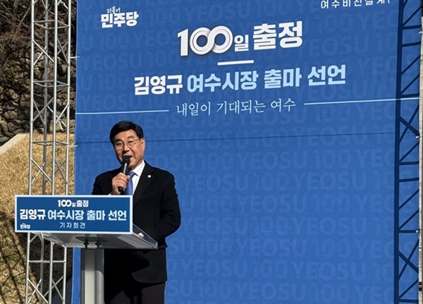 김영규 예비후보(전 시의장)는 이날 출마 기자회견에서 “지금 여수는 산업 침체와 인구 유출로 성장이 멈췄고, 시민들은 내일을 꿈꾸기 어려운 위기에 처해 있다”면서 “제대로 일하지 않는 행정, 지역에 대한 책임감 없는 무능한 리더십을 끝내고 내일이 기대되는 여수를 시민과 함께 만들겠다”고 포부를 밝혔다.