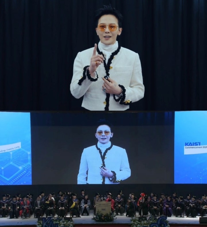 23일 소속사 갤럭시코퍼레이션에 따르면 지드래곤은 지난 20일 대전 카이스트 본원에서 열린 2026년도 학위수여식에서 영상을 통해 사회로 첫발을 내딛는 졸업생들을 격려했다.