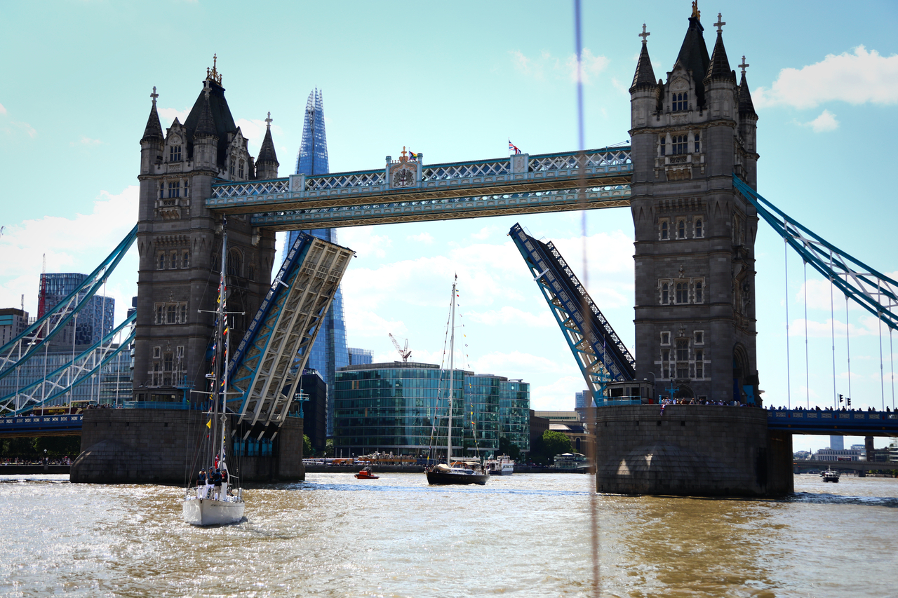 | 영국 런던의 명물 타워브리지 밑으로 배들이 지나가고 있다. 이 다리는 상판이 들어올려지는 도개교다. [게티이미지] |