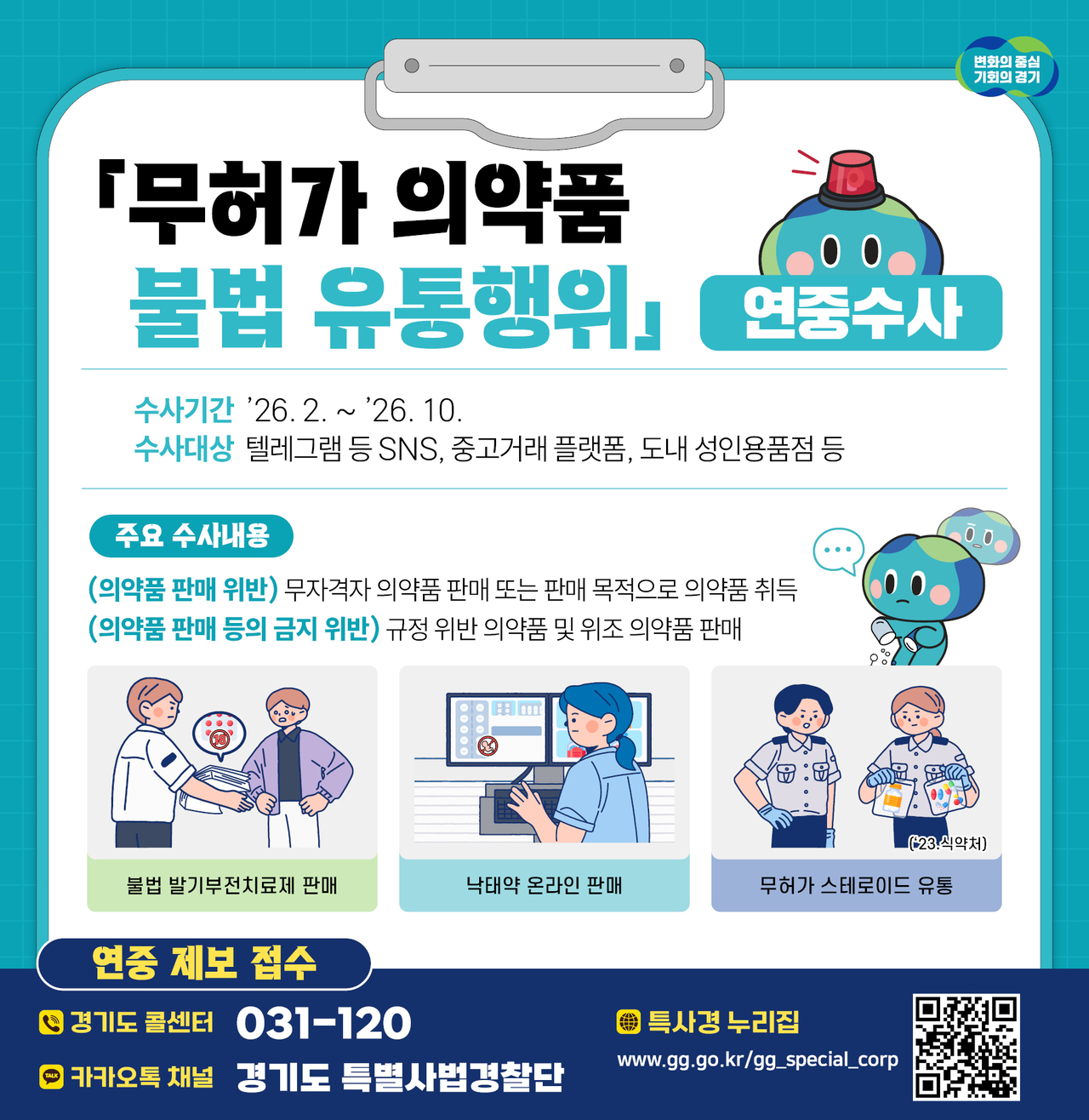 특히, 단속을 피하기 위해 은밀하게 이뤄지는 온·오프라인 불법 유통망을 끝까지 연중 지속적으로 추적해 보건 범죄를 근절하겠다는 취지다.