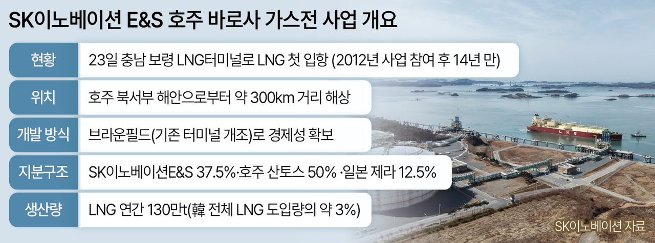 [헤럴드경제=박혜원 기자] SK이노베이션 E&S가 호주 바로사(Barossa) 가스전에서 직접 생산한 액화천연가스(LNG)가 보령 LNG터미널에 첫 입항했다. 이를 두고 대한민국 민간 자원개발 역사에 새로운 획을 그었다는 평가가 나온다.