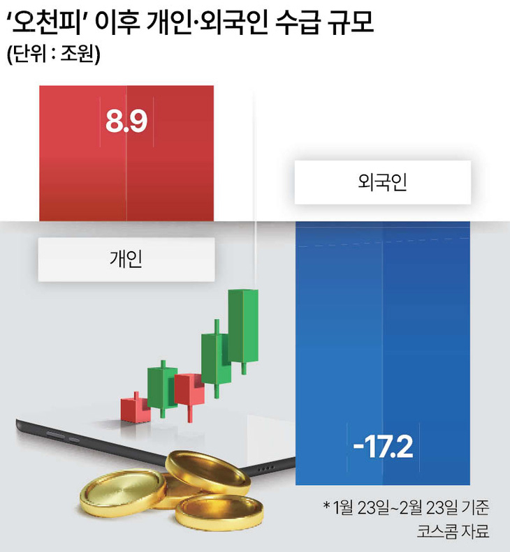 오천피 이후 개인 9조원 매수세 이어가