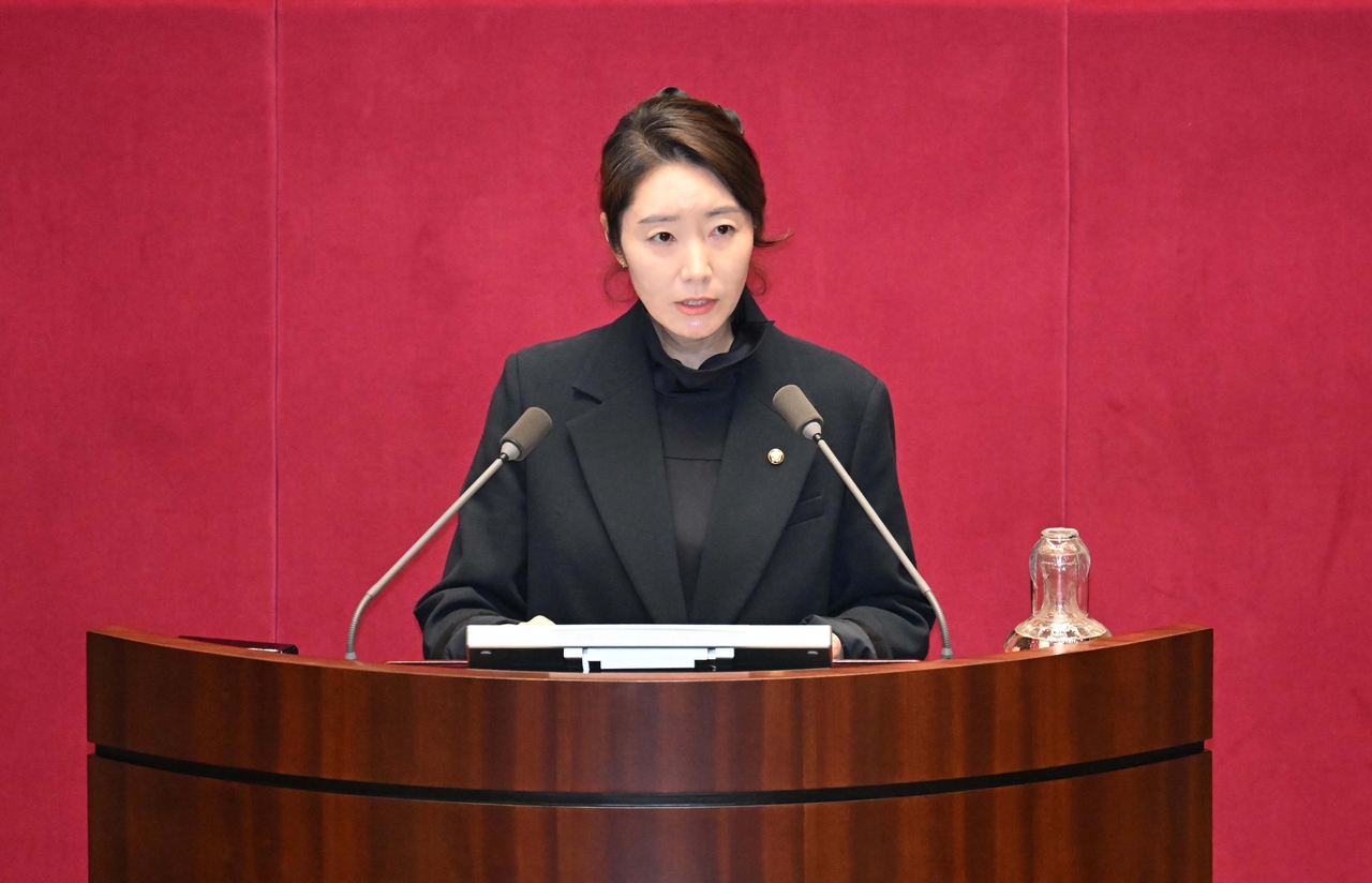 | ‘공천헌금 1억원 수수’ 혐의로 구속영장이 청구된 강선우 무소속 의원이 지난 24일 국회에서 열린 2월 임시국회 8차 본회의에서 자신의 체포동의안에 대한 신상 발언을 하고 있다. 이상섭 기자 |
