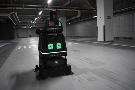 | 자율주행 청소 로봇이 입주 전 건설현장 지하주차장을 청소하고 있다.[포스코이앤씨 제공] |