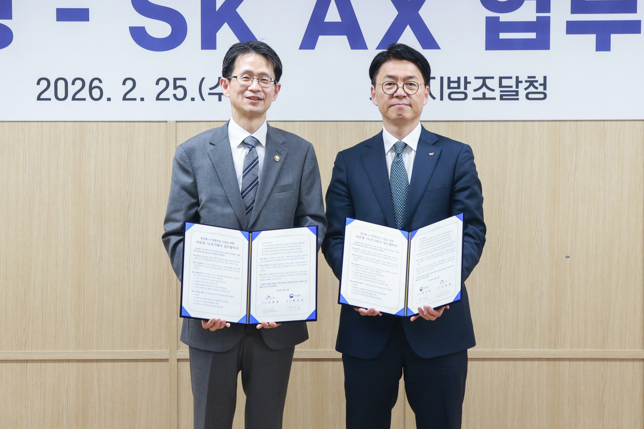 [헤럴드경제= 이권형기자] 조달청(청장 백승보)과 SK AX(사장 김완종)는 25일 서울지방조달청에서 ’생성형 AI 역량인증 도입을 위한 업무협약‘을 체결했다.