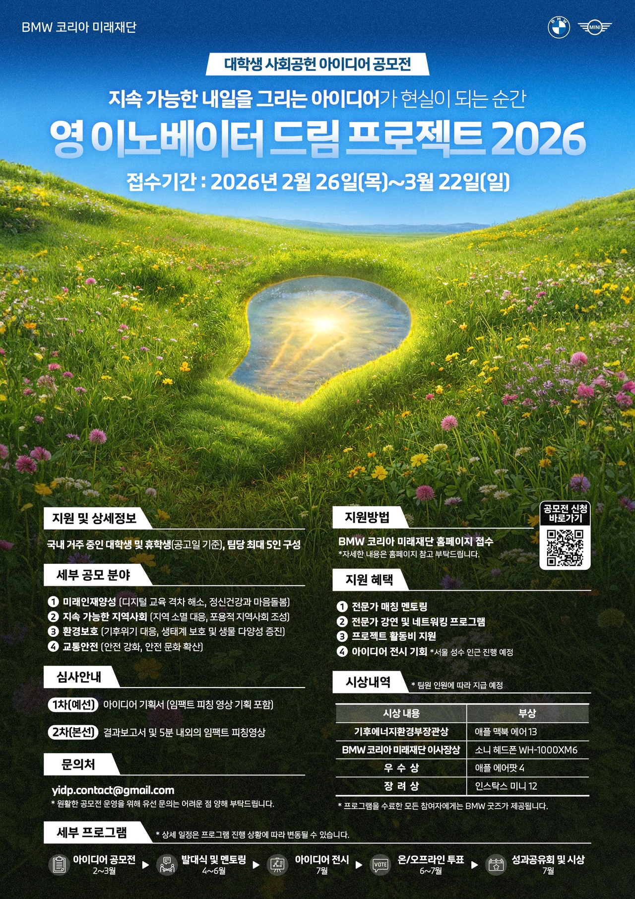 | BMW 코리아 미래재단 대학생 사회공헌 아이디어 공모전 ‘영 이노베이터 드림 프로젝트’ 홍보 이미지 [BMW 코리아 미래재단 제공] |