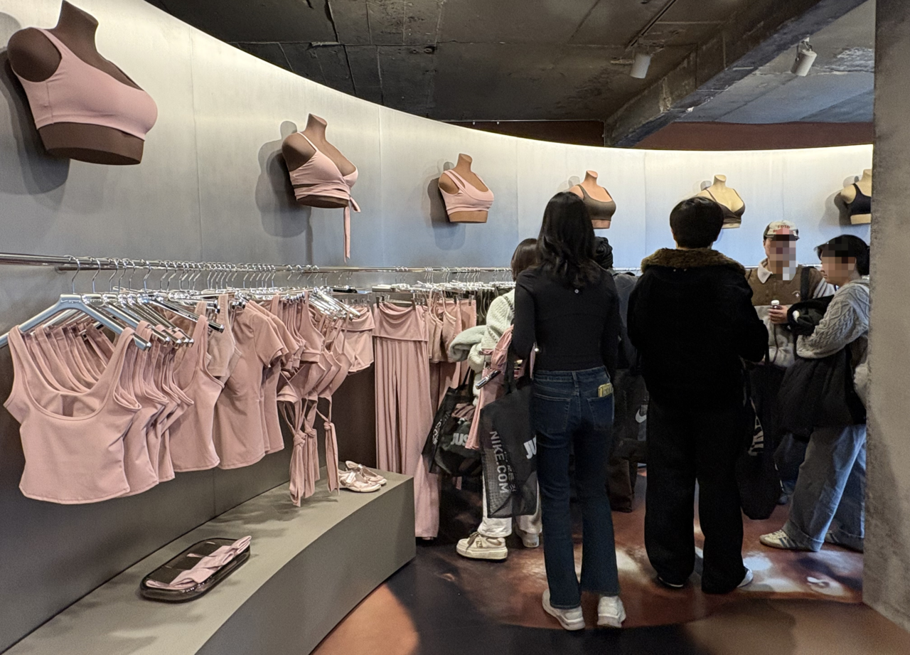 패션업계 종사자들도 있었다. 김모 씨는 “스킴스 가격대를 고려하면 이번 협업 제품은 충분히 경쟁력이 있다고 본다”며 “나이키의 기능성과 스킴스 특유의 실루엣이 어떻게 결합했는지 확인하고 싶어 방문했다”고 했다.