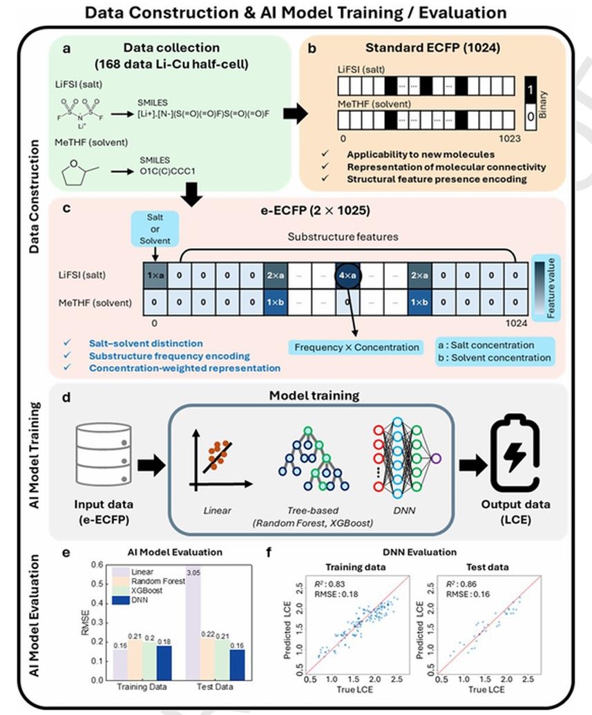 연구 결과는 에너지 저장 분야 국제학술지 ‘Energy Storage Materials(IF=20.2)’에 지난 7일 온라인 게재됐다. 논문 제목은 ‘Interpretable enhanced-ECFP-guided deep learning for rational electrolyte design and Coulombic efficiency prediction in lithium metal batteries’다.